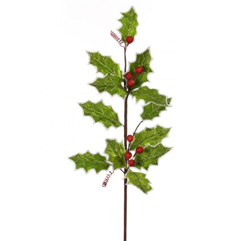 31in Velvet Sequin LIME Holly w/RED Berries