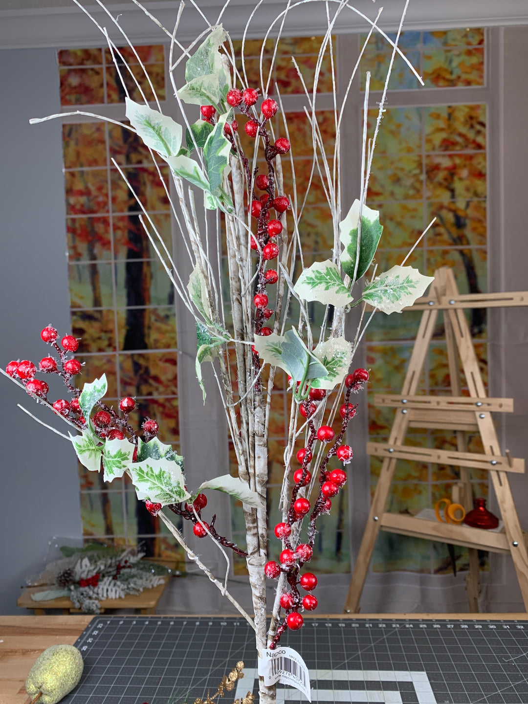 30in Holly Berry w/Birch Twigs
