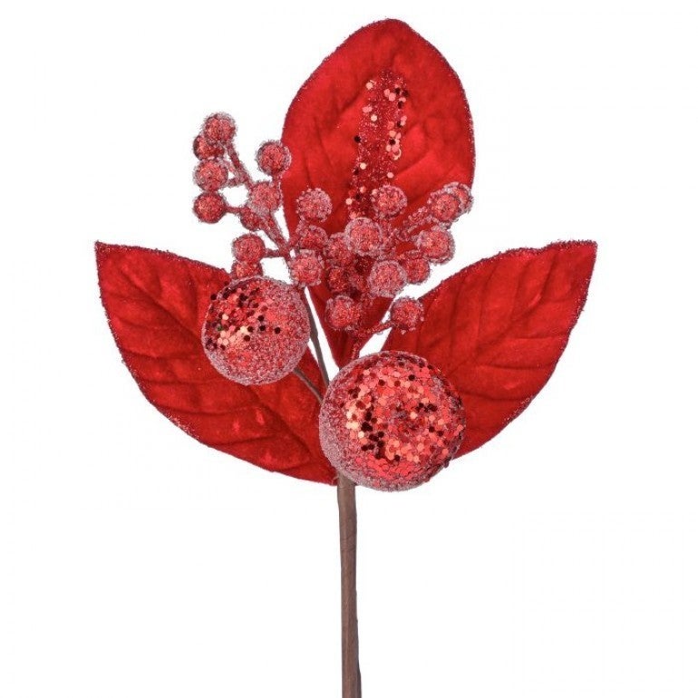 32in RED Rose Leaf Spray