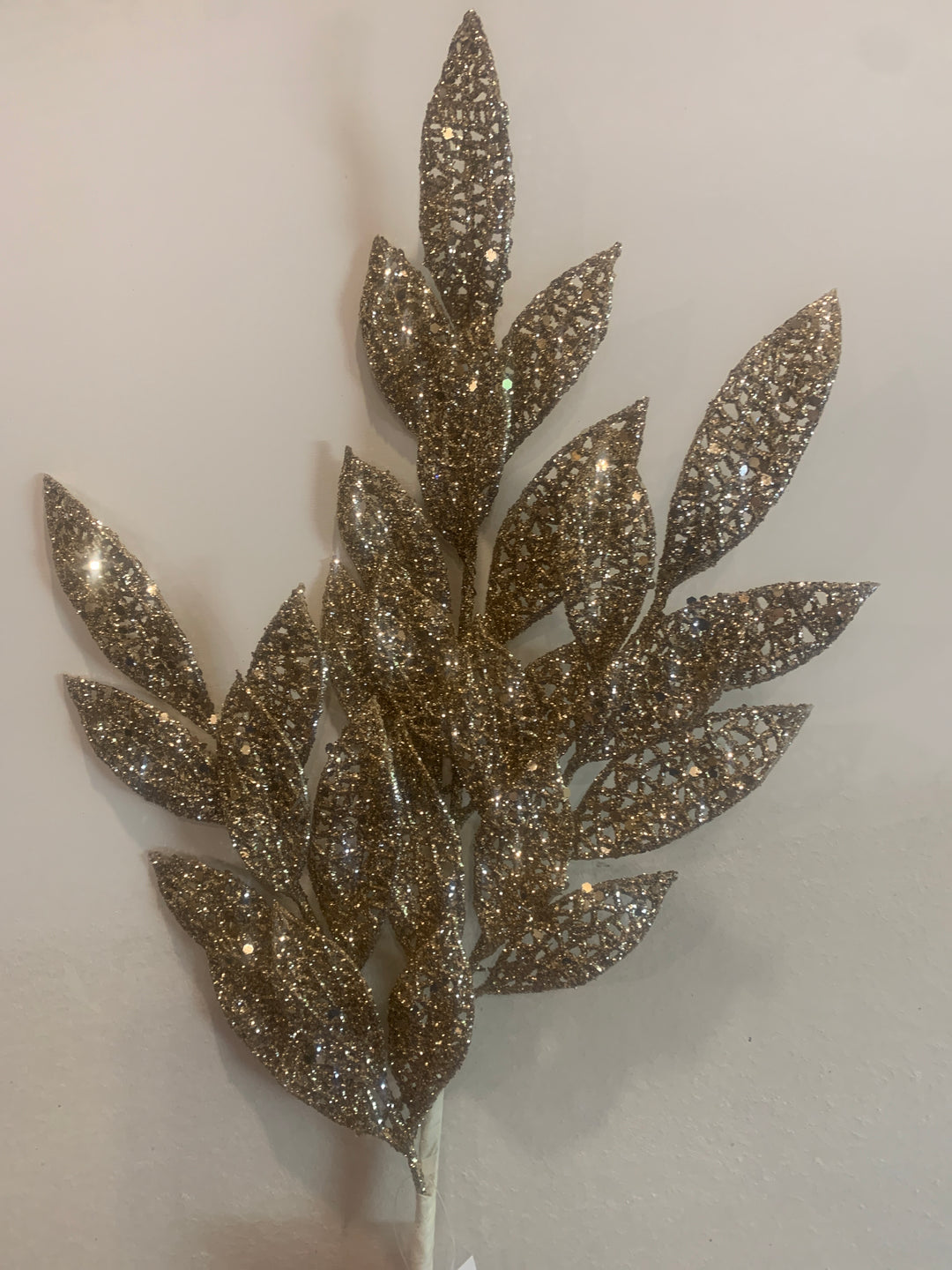 27in Metallic Glitter Magnolia Leaf Spray CHAM