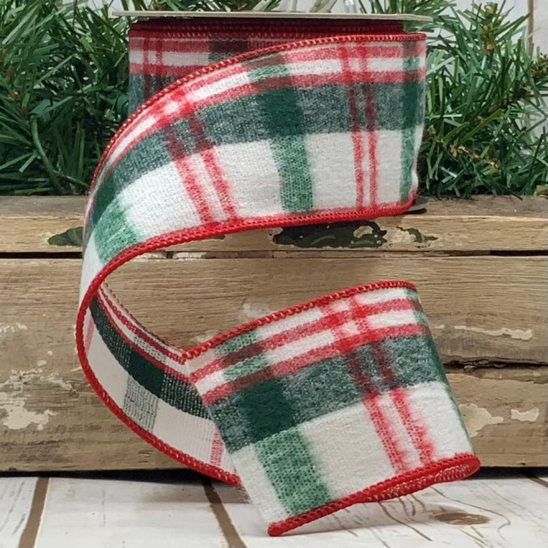 2.5inx10yd Wool Holiday Plaid Green, Red and White