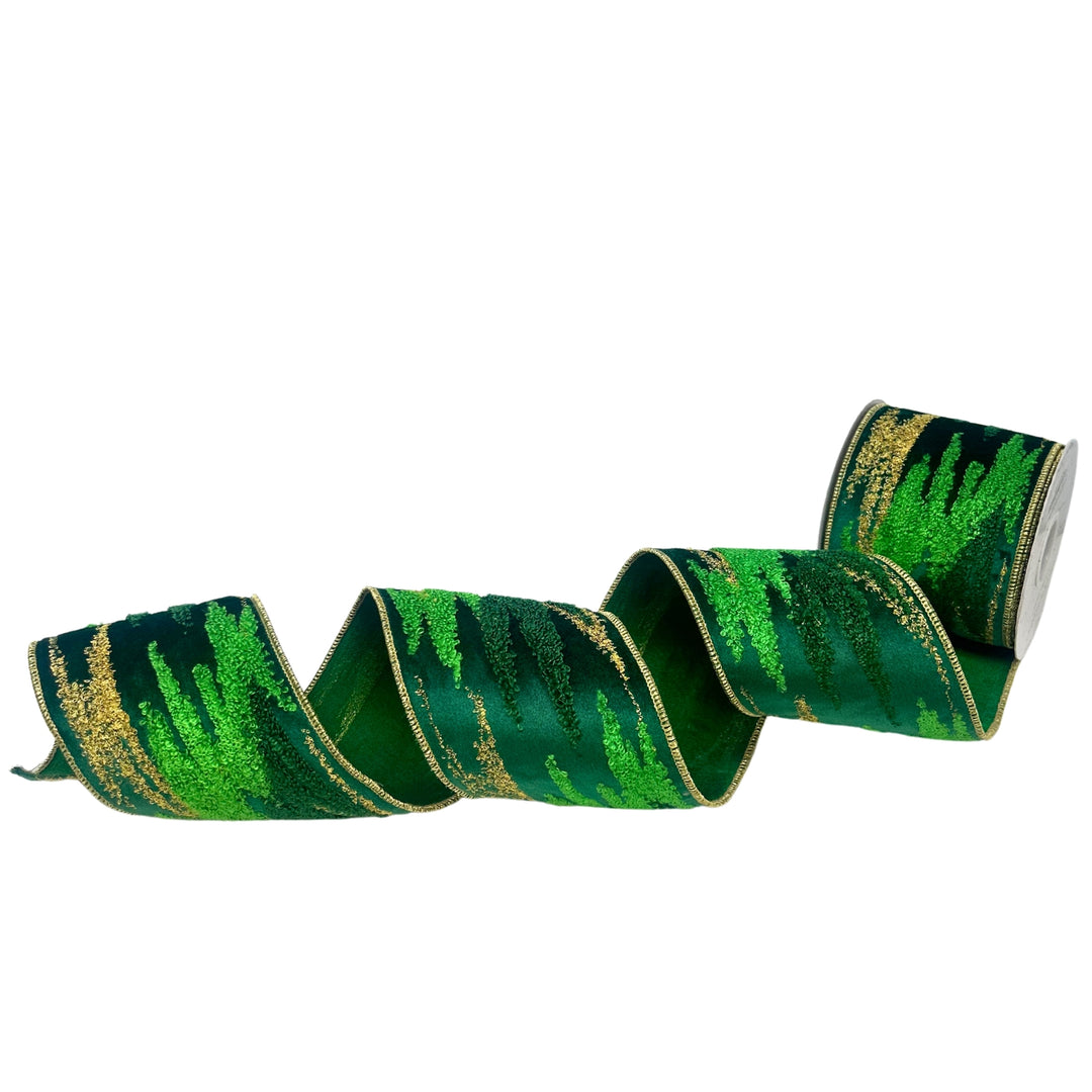 4inx10yd GREEN Abstract Velvet w/Green Back