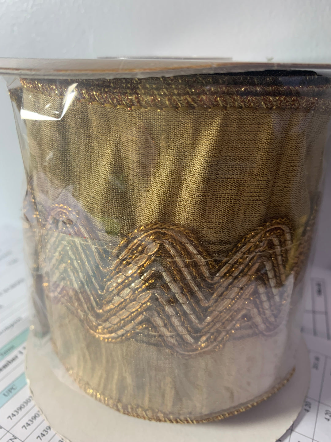 4in x 5yd GOLD/CHAMPAGNE Wave on Antique GOLD