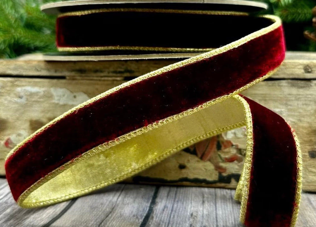 1.5 inch X 10 Yards D Stevens Velvet Red on Gold Christmas Ribbon