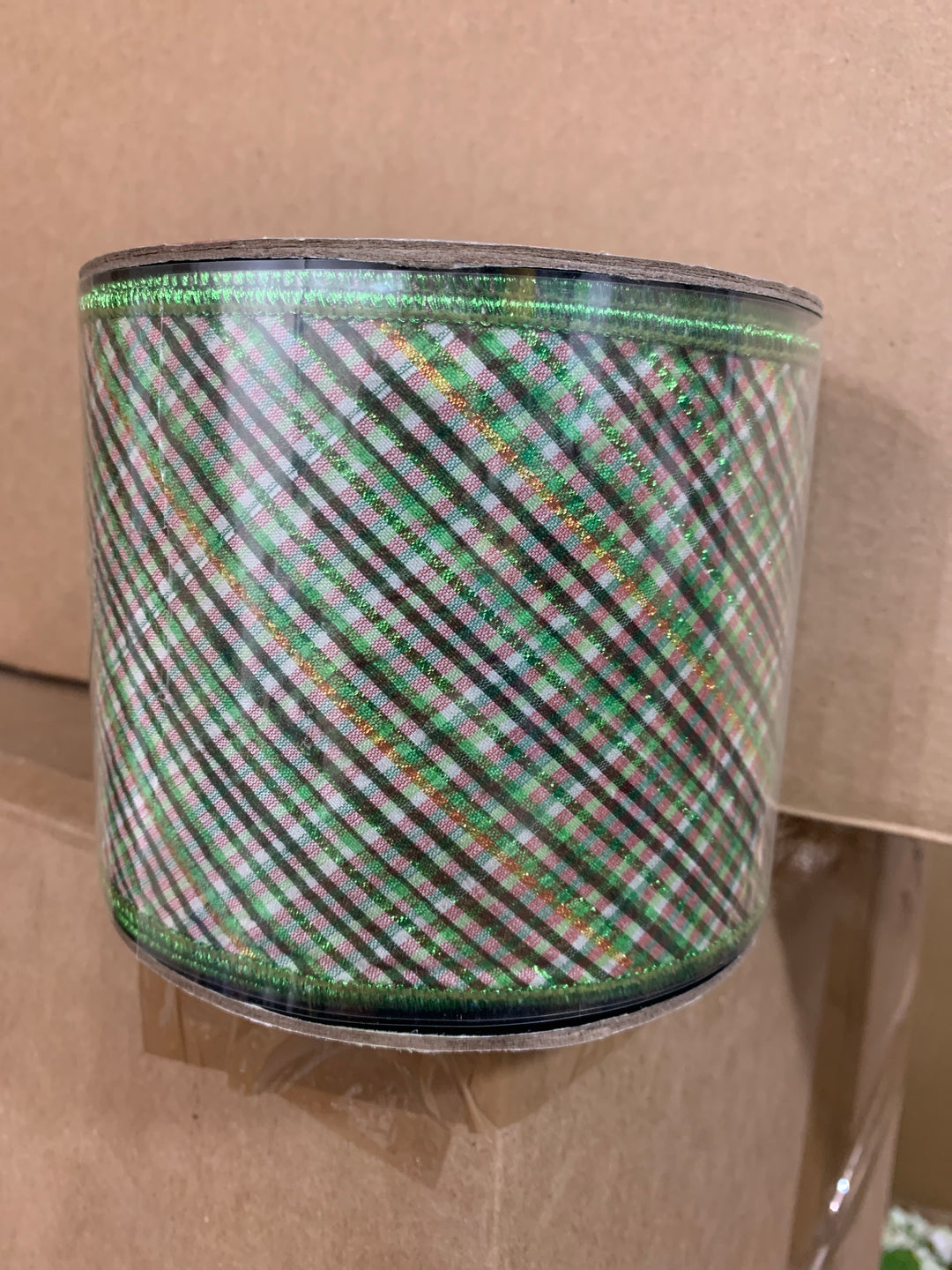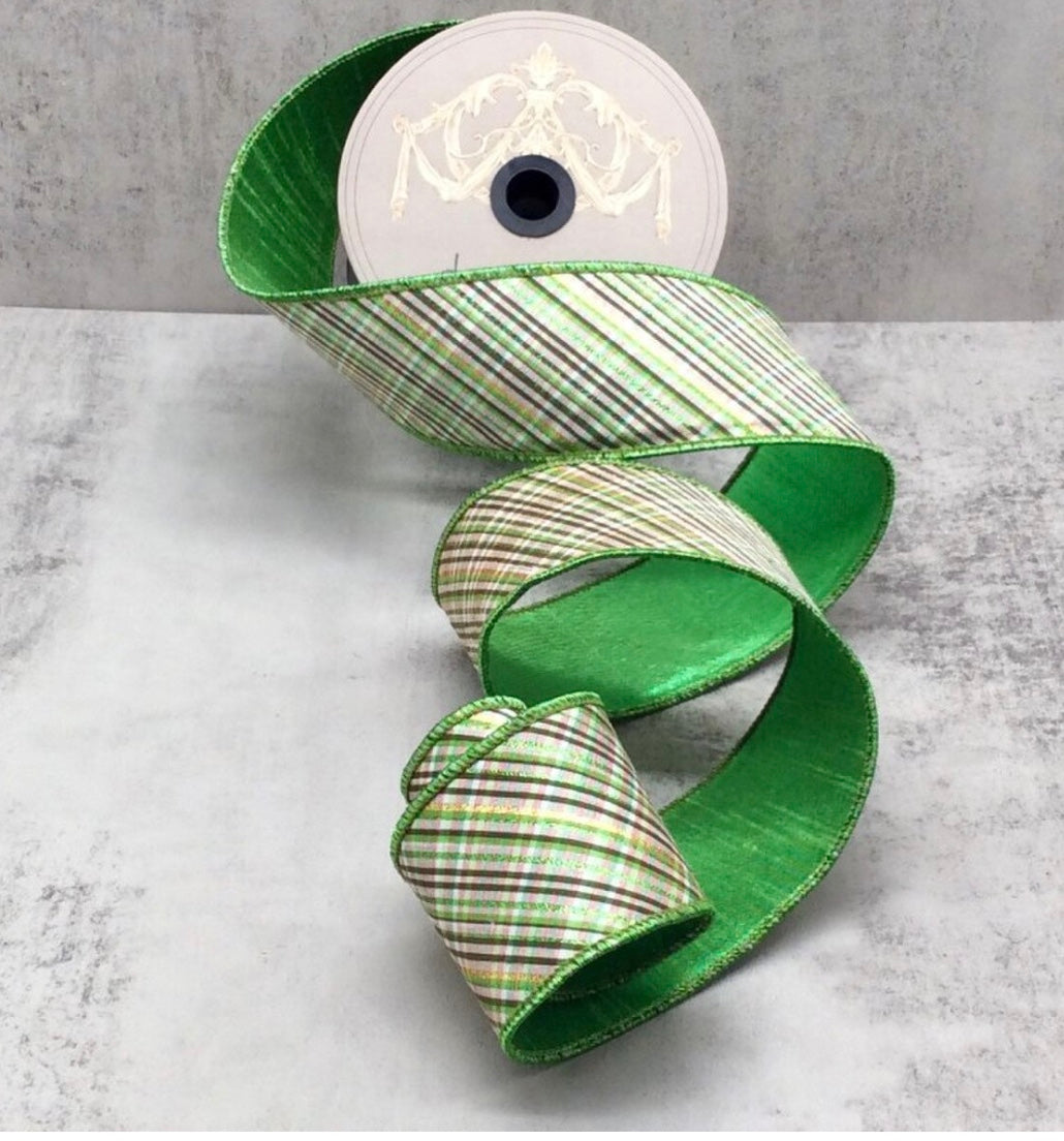 4in Dupion Diagonal ASHER PLAID w/GREEN Back