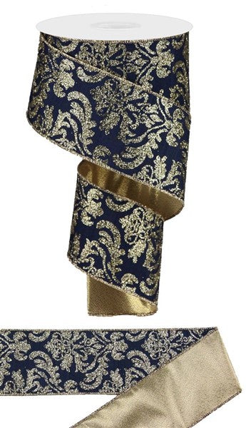 2.5in Bold Damask/Metallic NAVY/GOLD