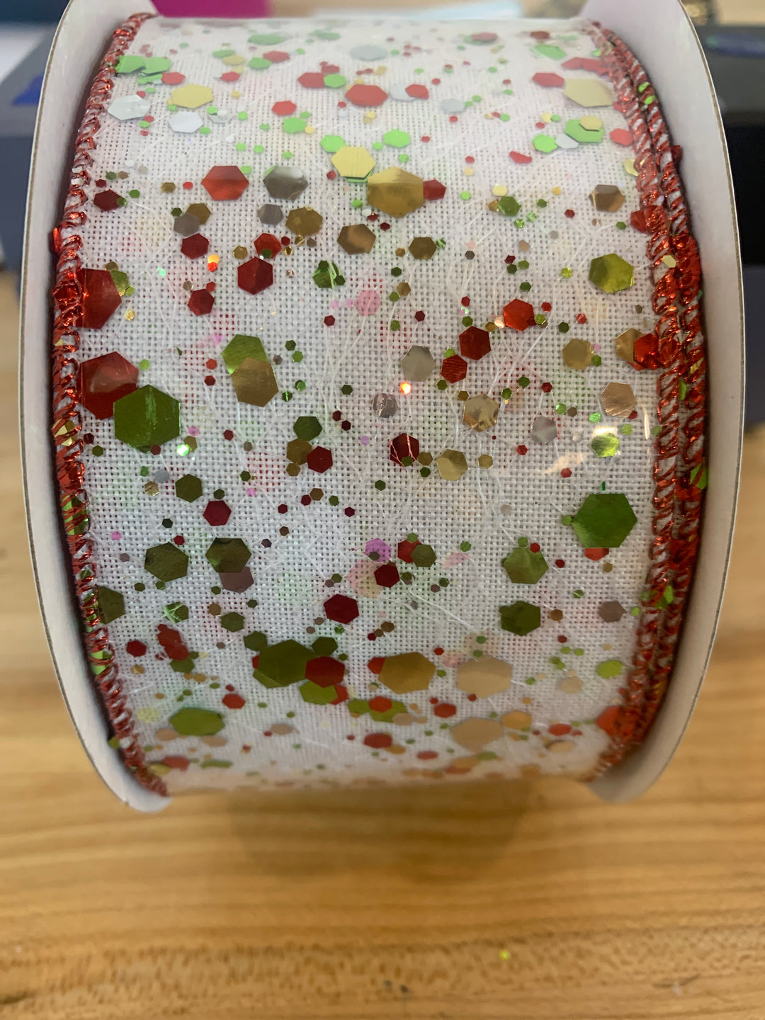 1.5inx10yd Irregular Spot Glitter EMER/RED