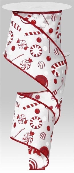 2.5 inch X 10 yard Ribbon Candy Red/White