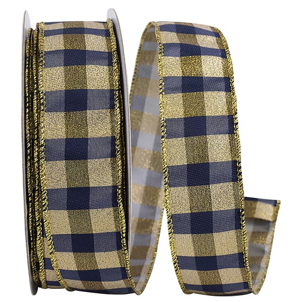 1.5inx20YARDS Check Metallic Bar ribbon NAVY/GOLD
