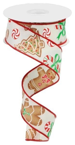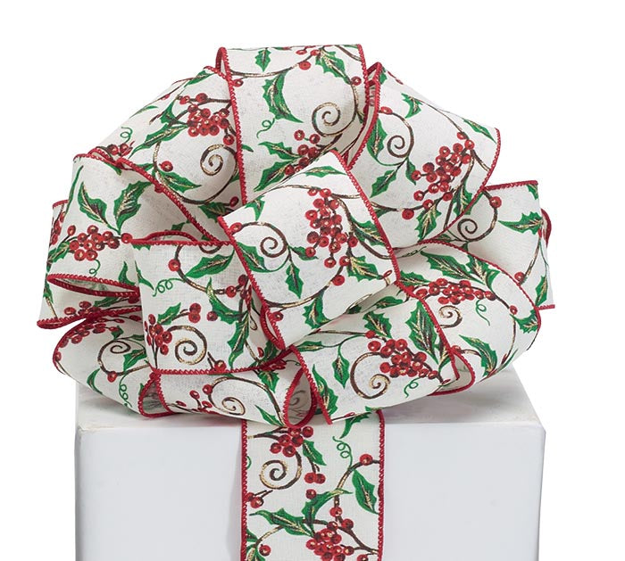 2.5in White Faux Linen WHITE w/RED Glitter Stripes