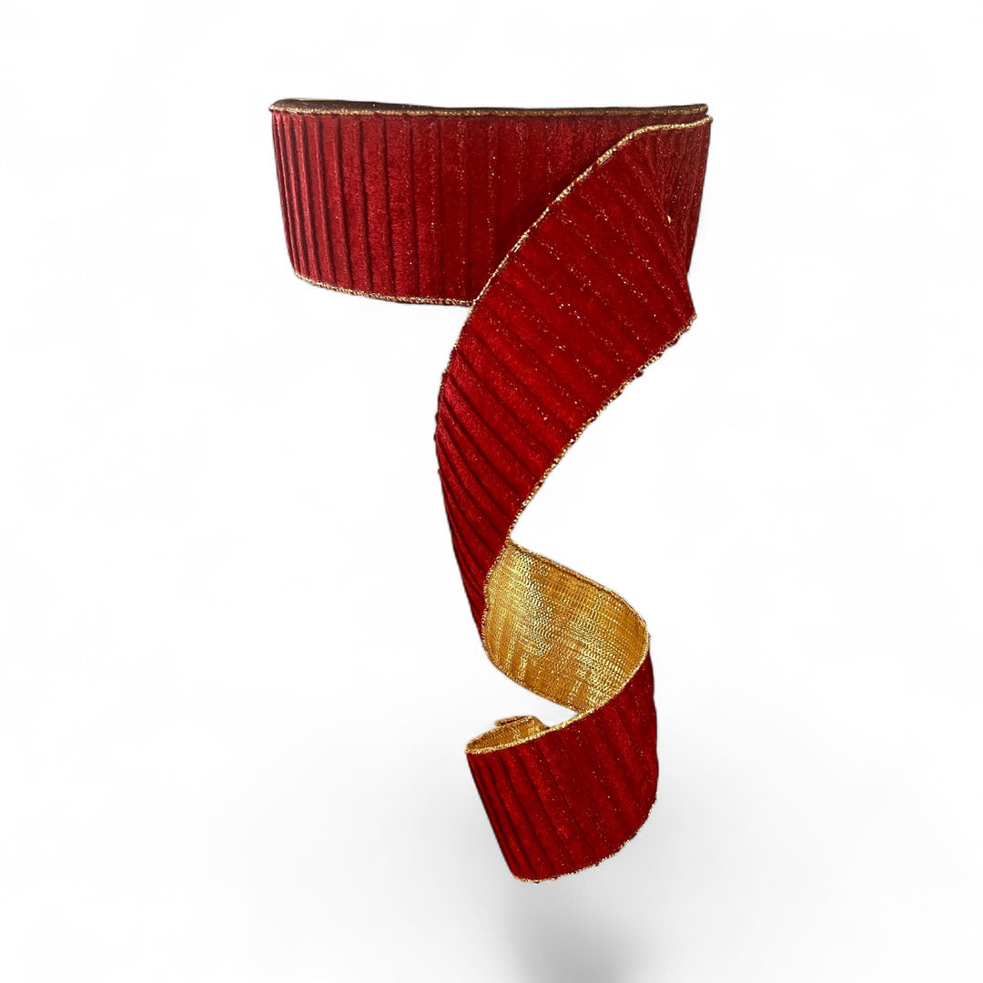 20YARDS X 2.5in Velvet Burgundy and Gold Pleated Christmas Ribbon
