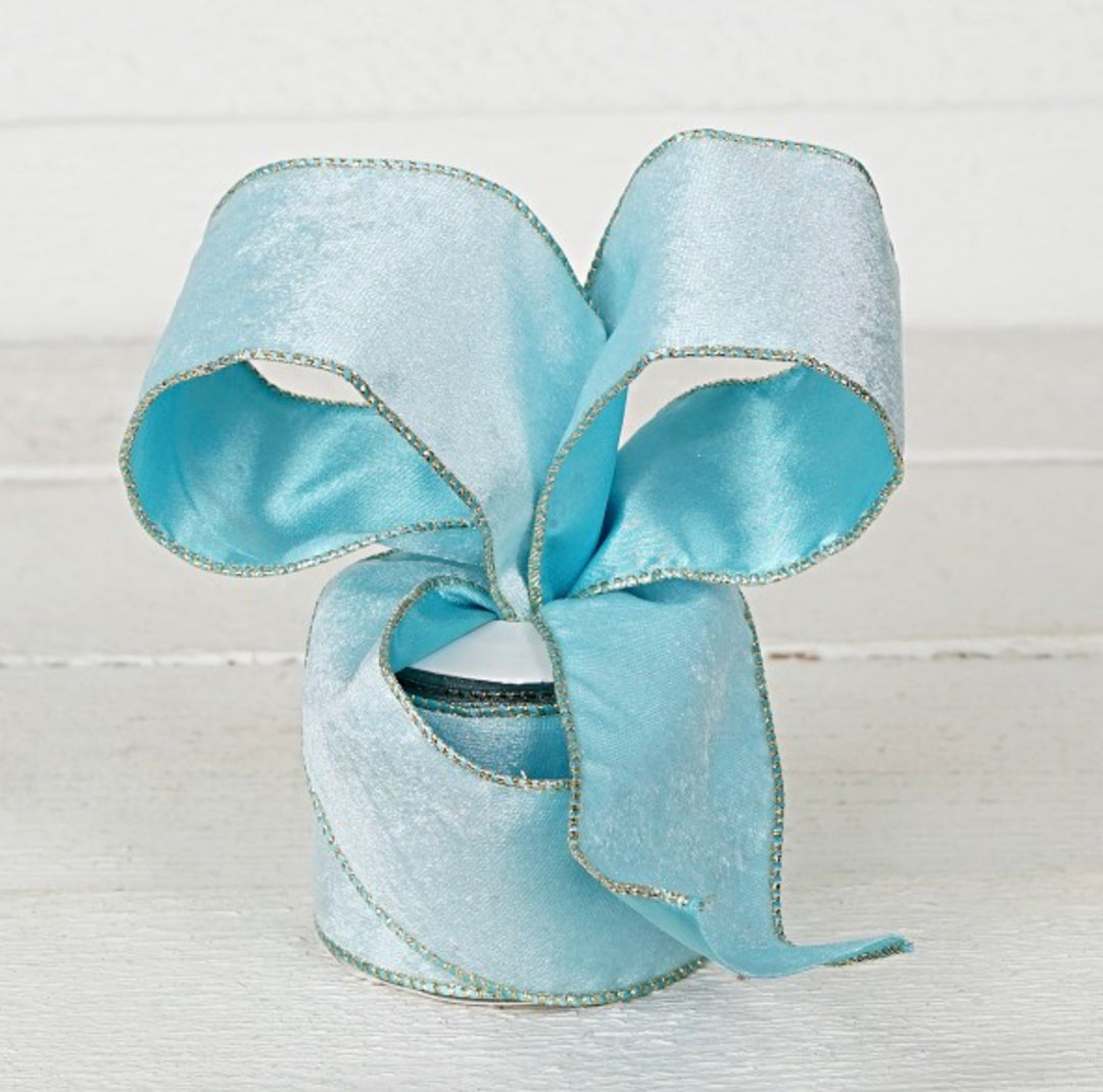 2.5x10 Metallic Back Velvet Ribbon LT BLUE