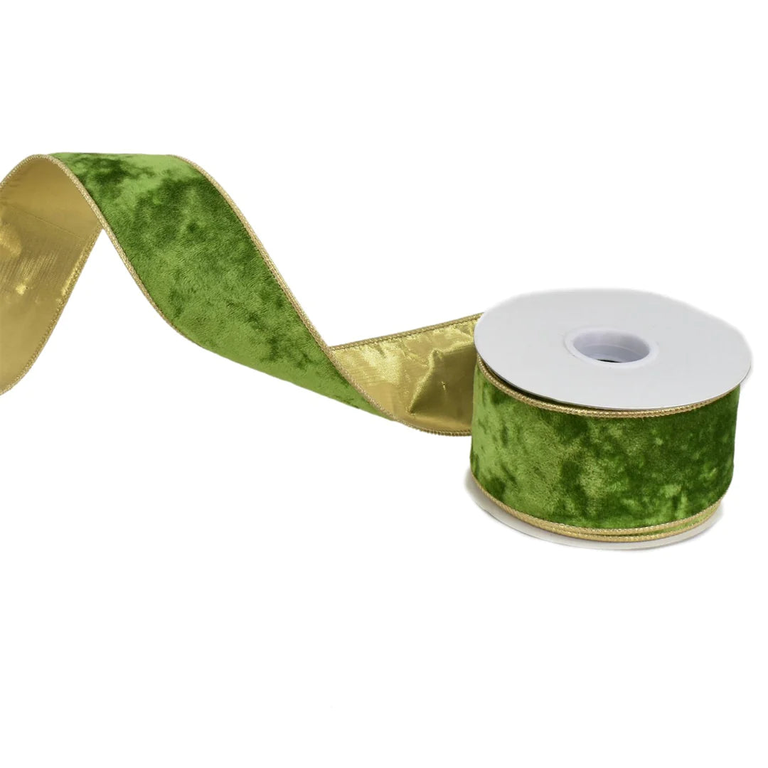 2.5inx10yd GREEN Velvet w/GOLD Edge