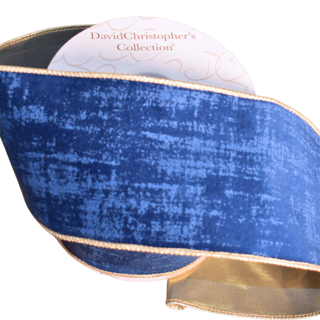 4inx10yd Textured Navy Velvet Ribbon with Gold Backing