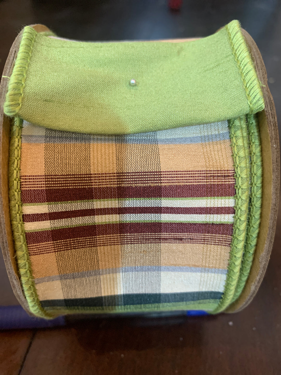 2.5in GREEN/TAN Plaid w/Dupioni Back
