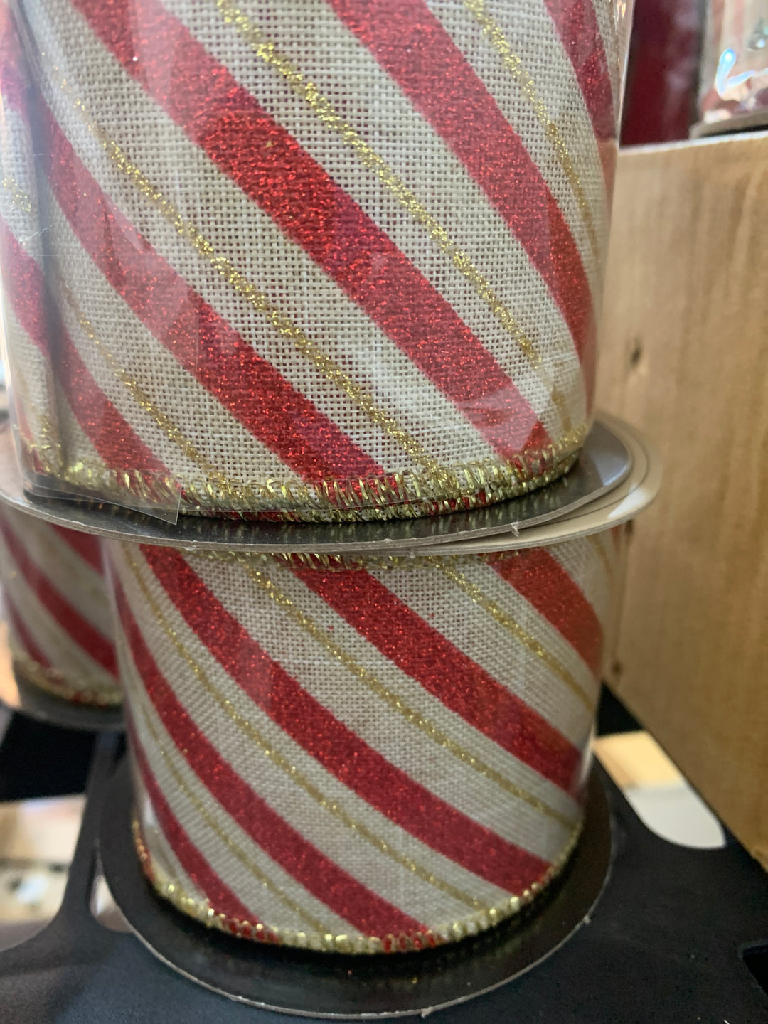 2.5inx10yd RED/BLACK Stripe Gnomes