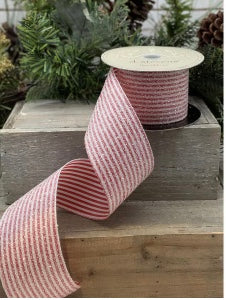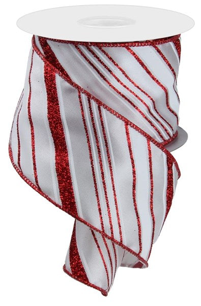 2.5inx10yd Satin Glitter Stripe RD/WH