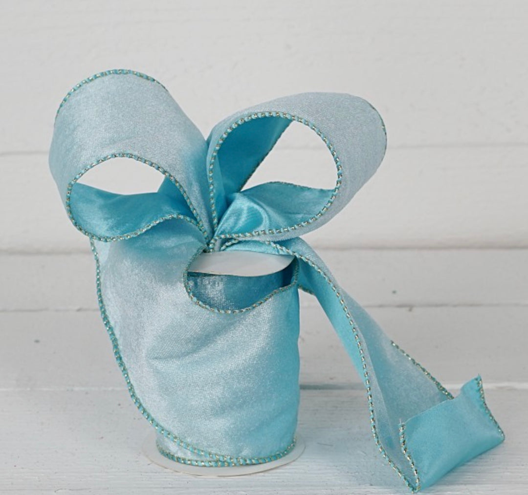 4x10 Metallic Back Velvet Ribbon LT BLUE