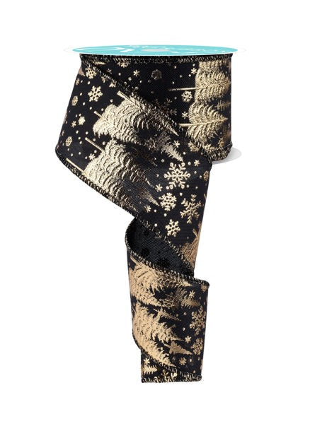 2.5inx10yd Pine Trees/Snow on BLACK