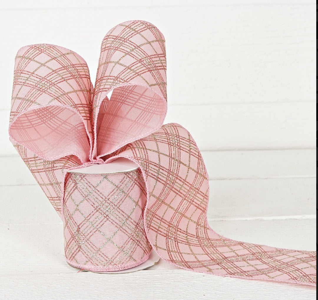 4in Pink Diagonal Glitter Ribbon