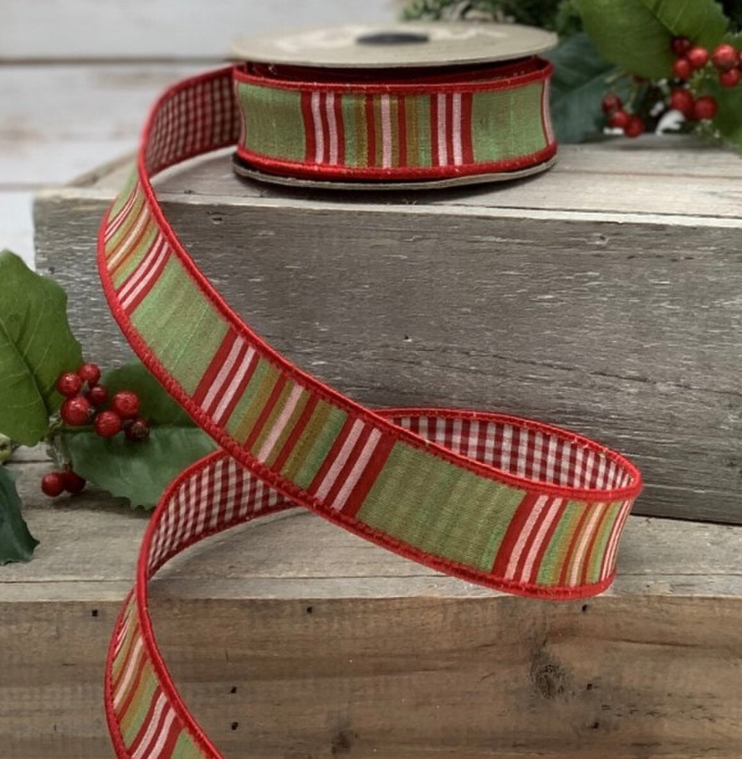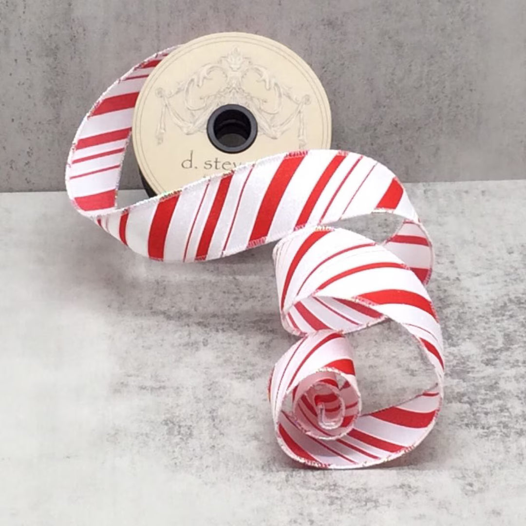 D Stevens 1.5 Inch X 10 Yards Satin Irredescent Glitter Stripes in Red on White Christmas Ribbon