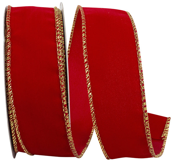 1.5inx10yd Value Velvet RED w/Gold Edge