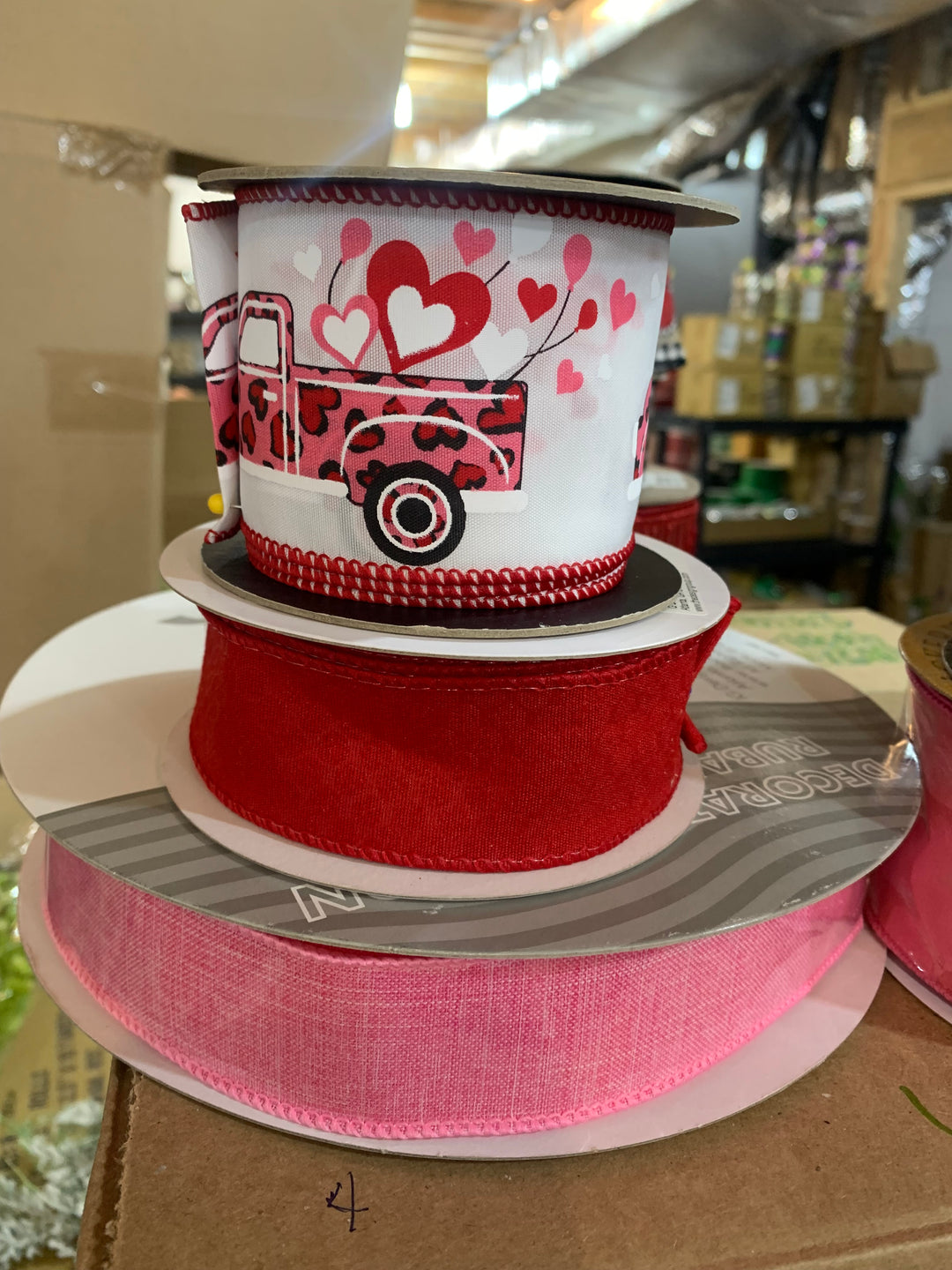 DStevens 2.5inx10yd Pink Truck Valentine Ribbon