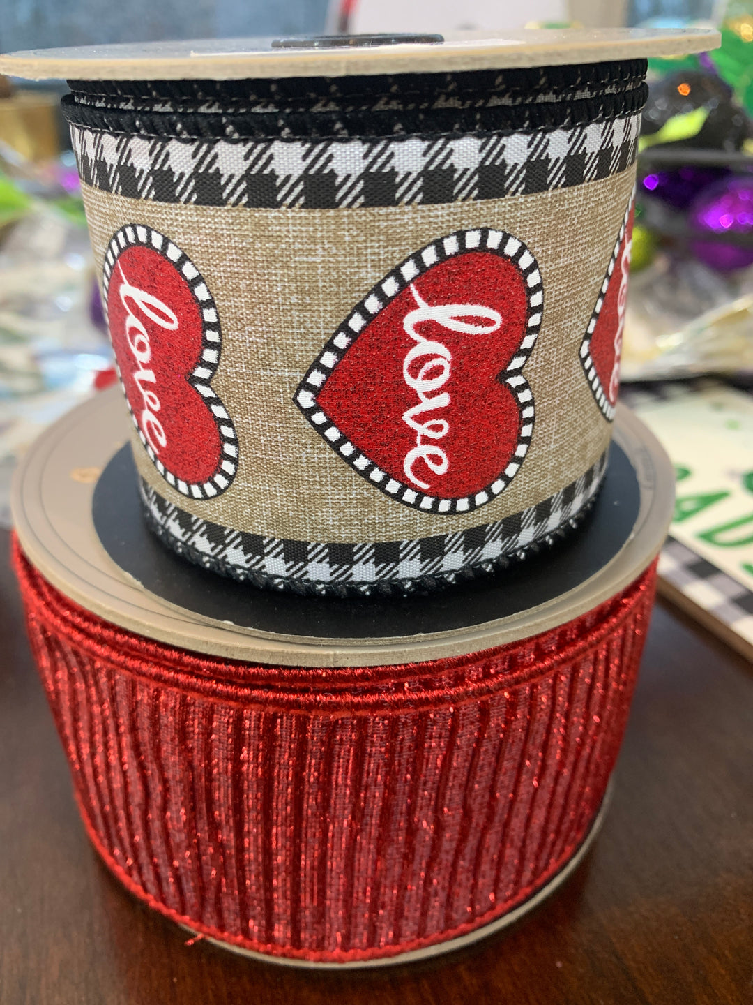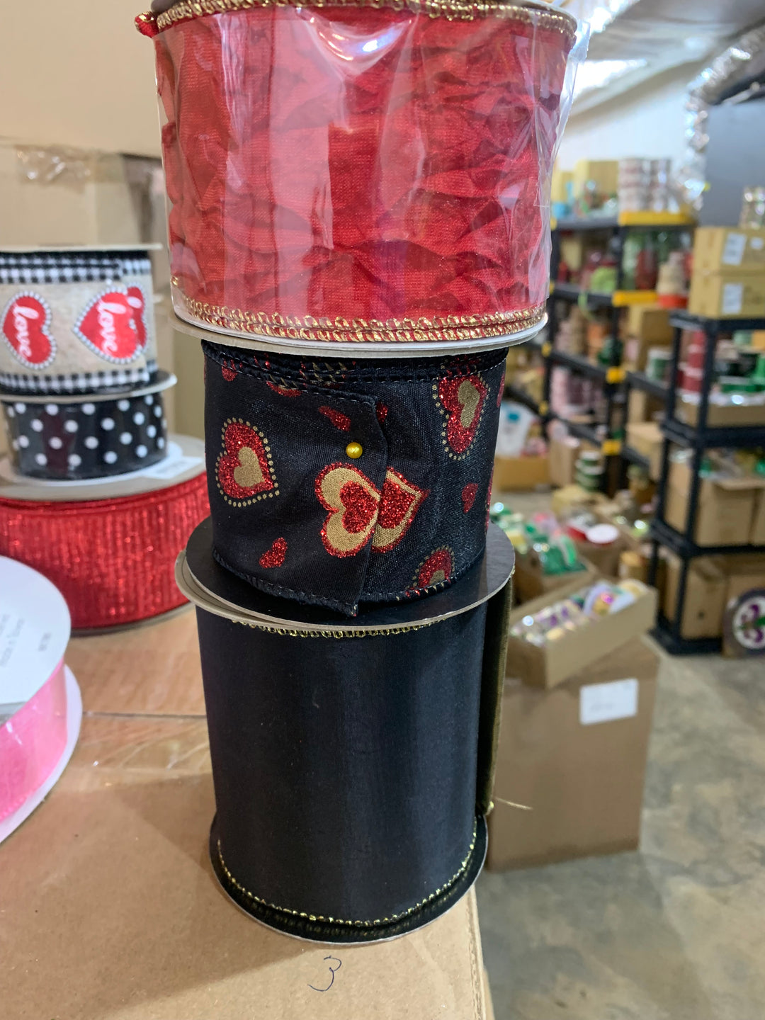 2.5inx10yd Satin Glitter Love Heart BLACK