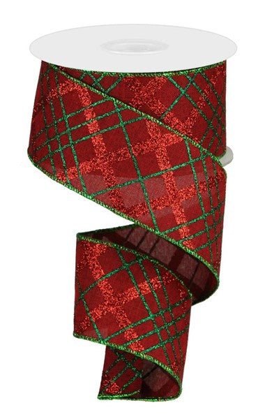 2.5inx10yd Glitter Dia Plaid Royal RED/GR
