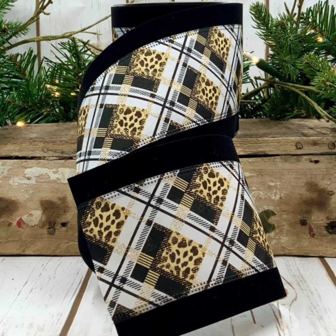 4inx10yd Leopard Velvet Black/White Plaid w/ Gold