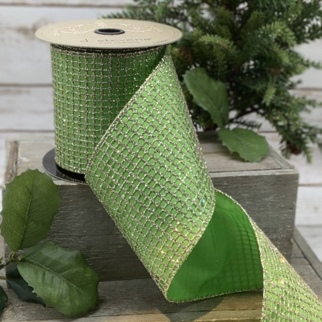 4in Taffeta Glitter Mesh GREEN/GOLD