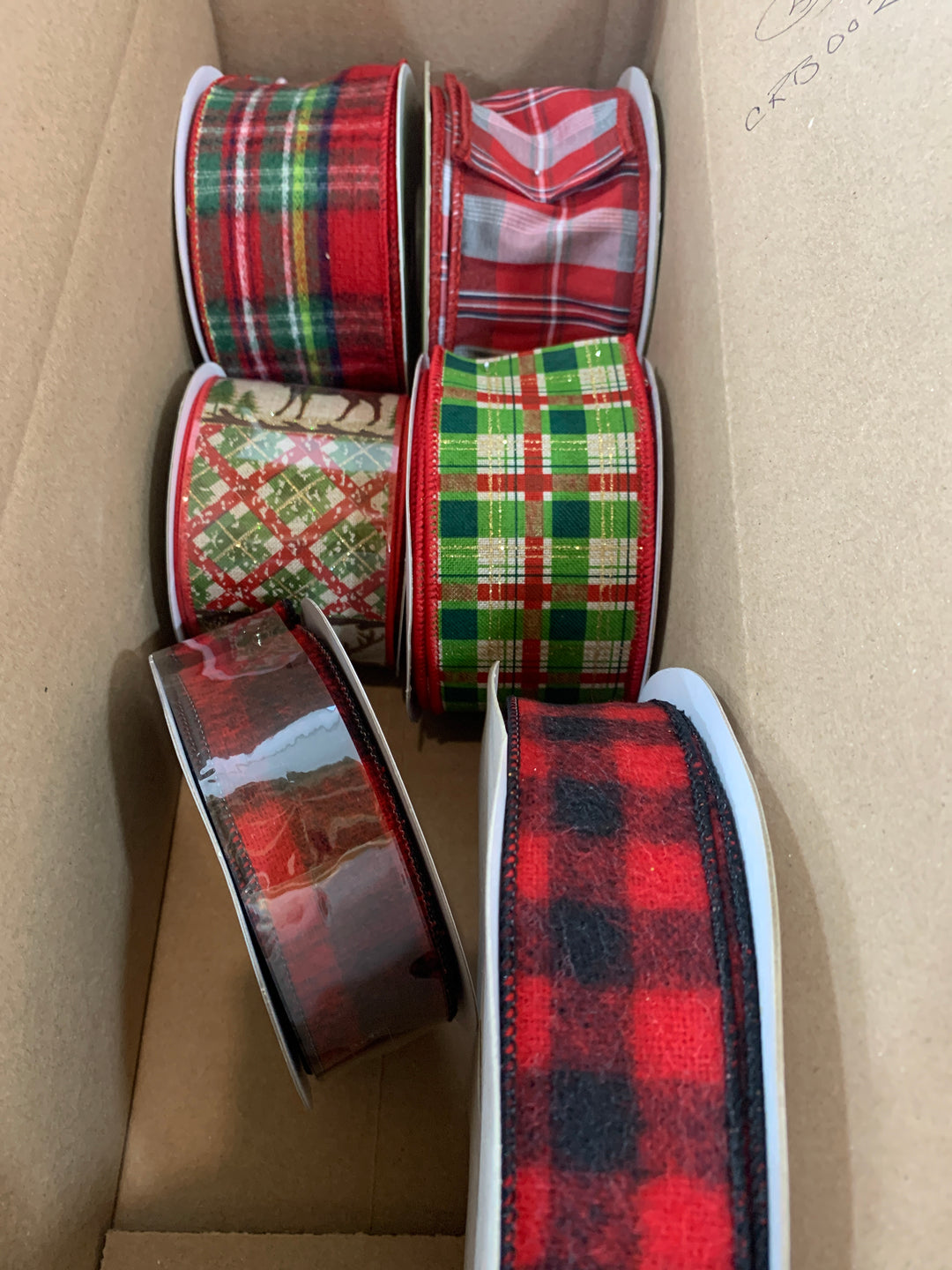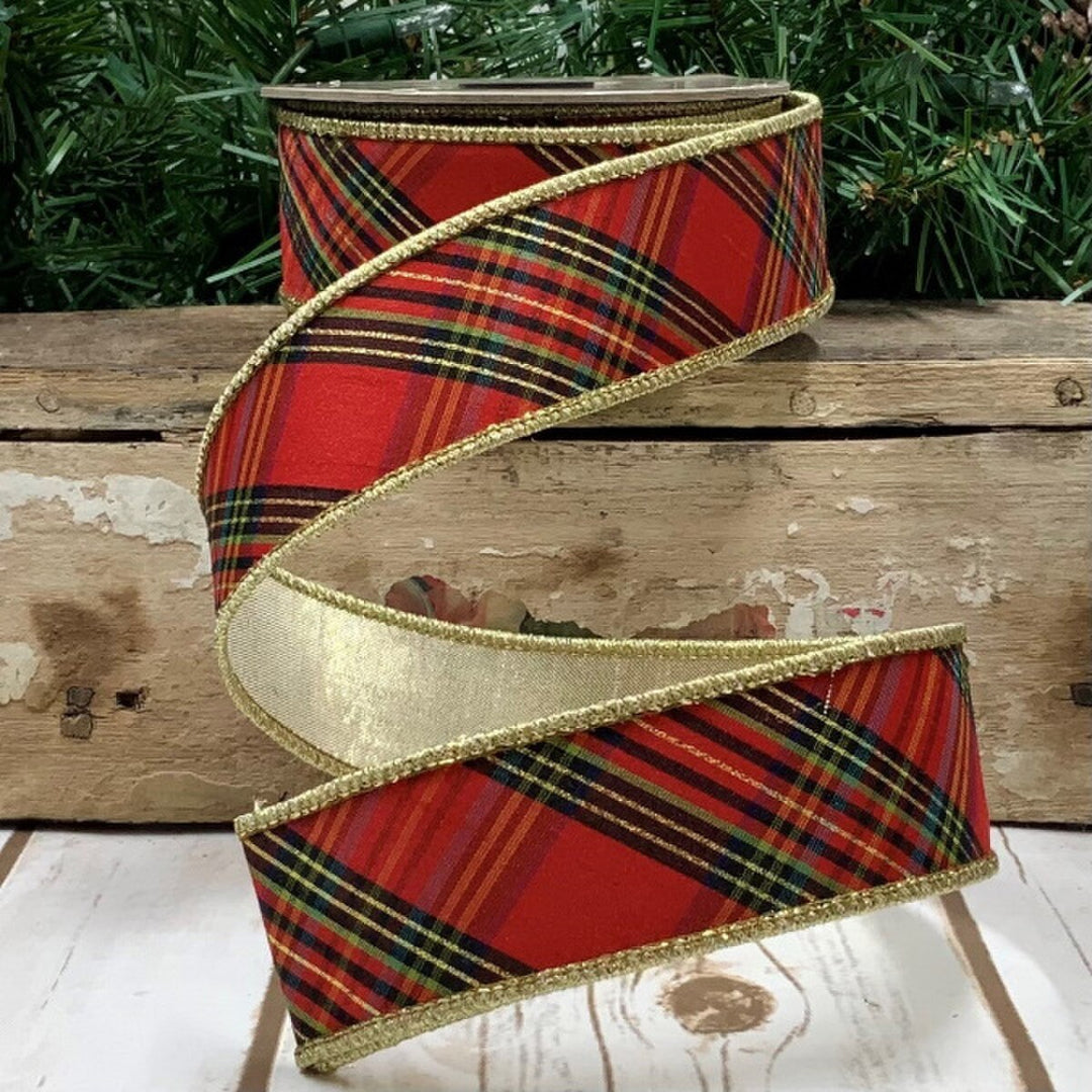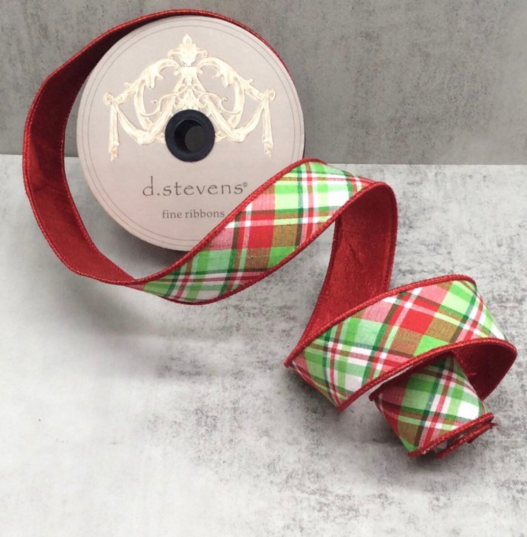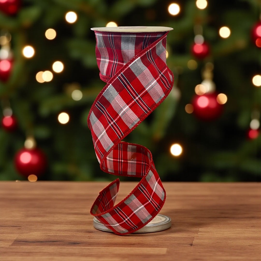 2.5 inch X 10 yard Plaid Dupion RE/WH/GREY Designer Ribbon Farmhouse