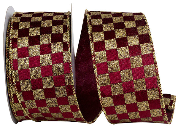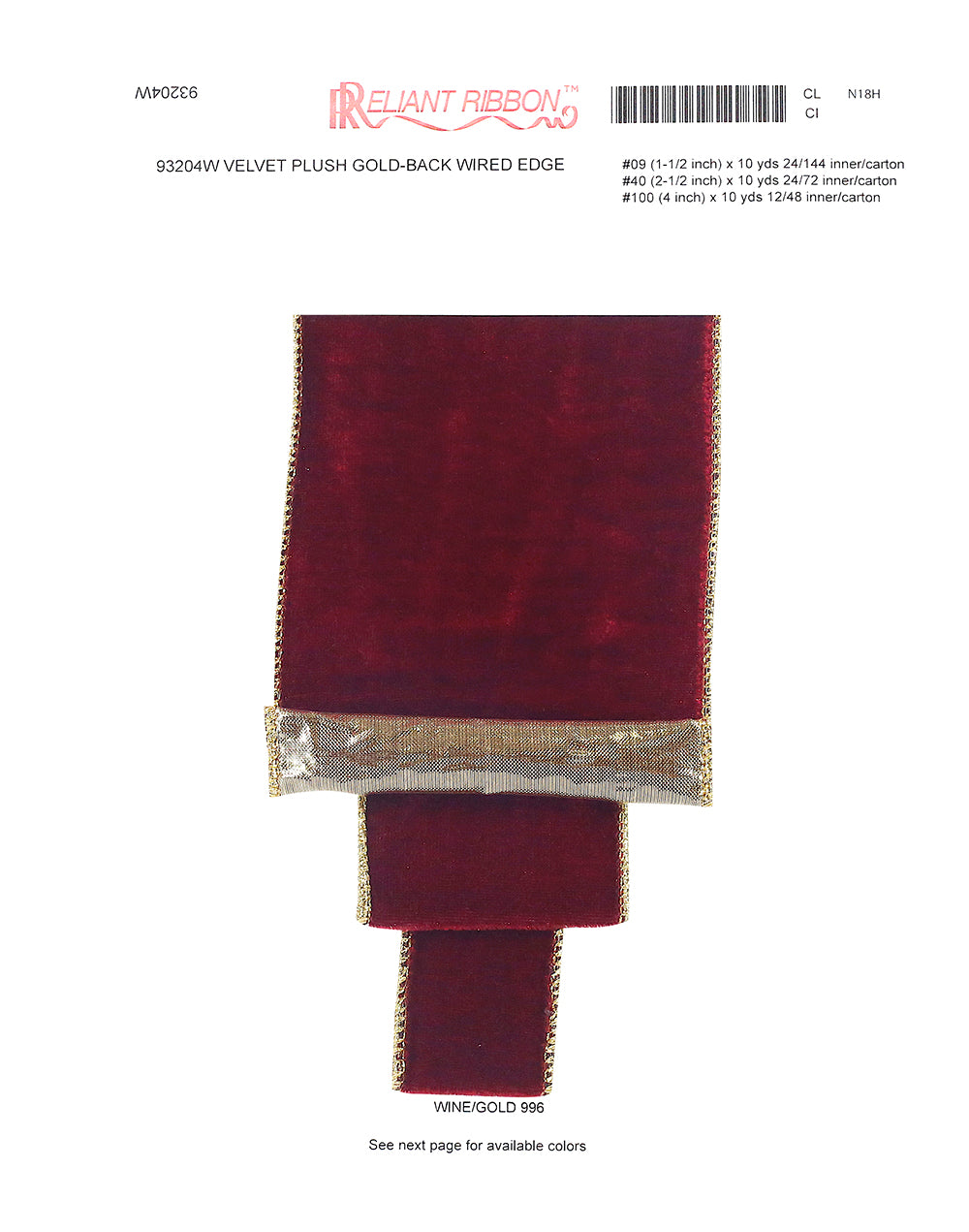 1.5inx10yd WINE/GOLD Velvet Plush Gold-Back