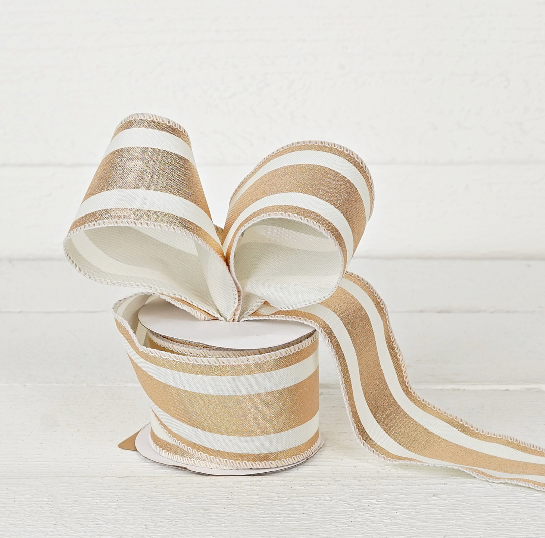2.5inx10yd Metallic Stripe GOLD/CREAM