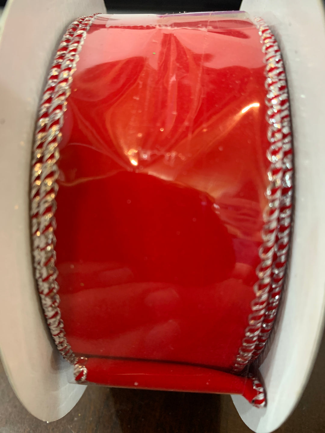 1.5inx10yd Value Velvet RED w/Silver Edge