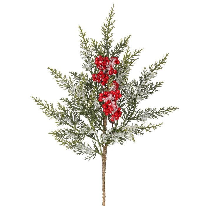 18in Flocked Arborvitae Spray GREEN/WHITE