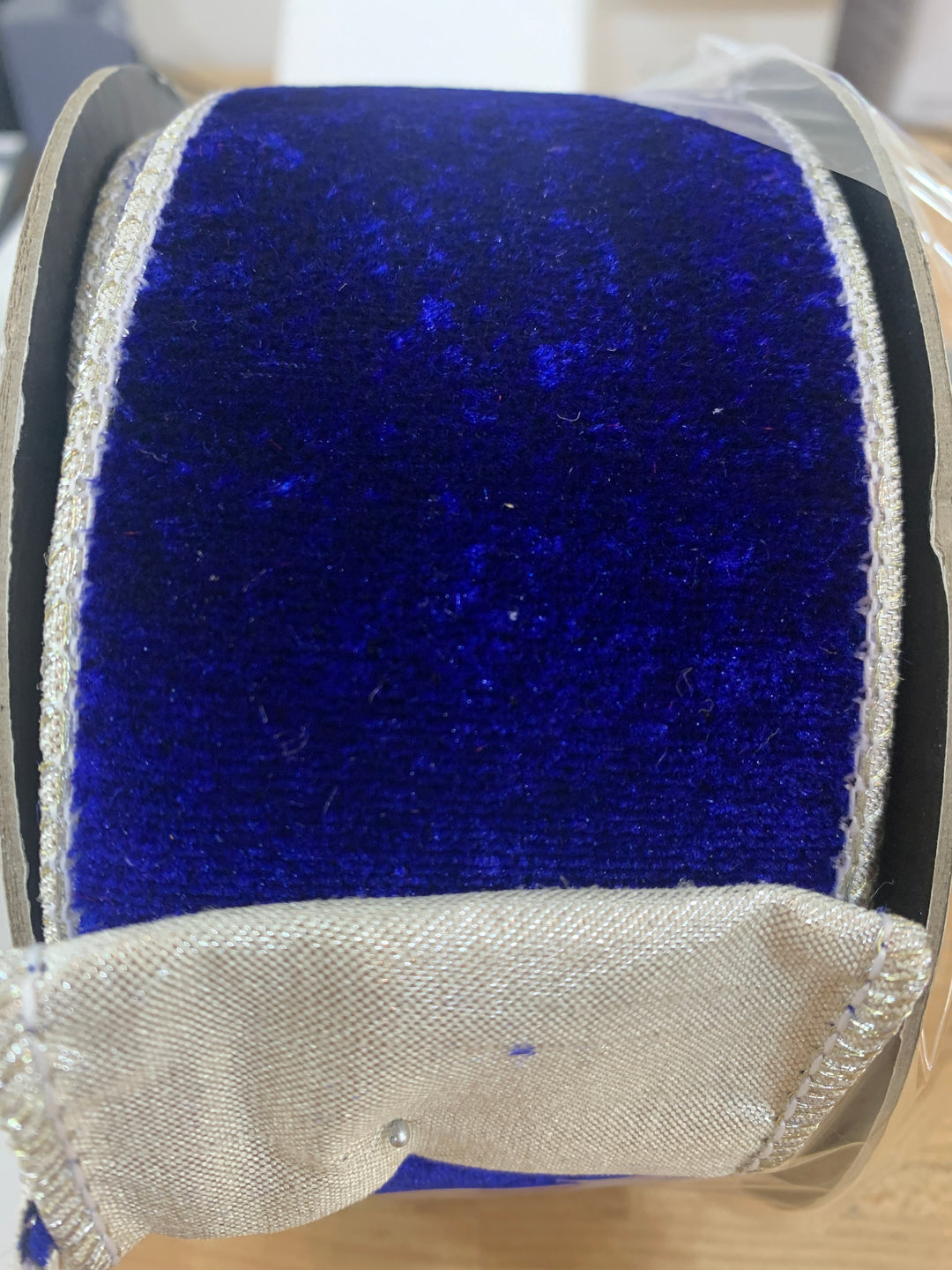 2.5 inch X 10 yard Velvet NAVY w/Silver