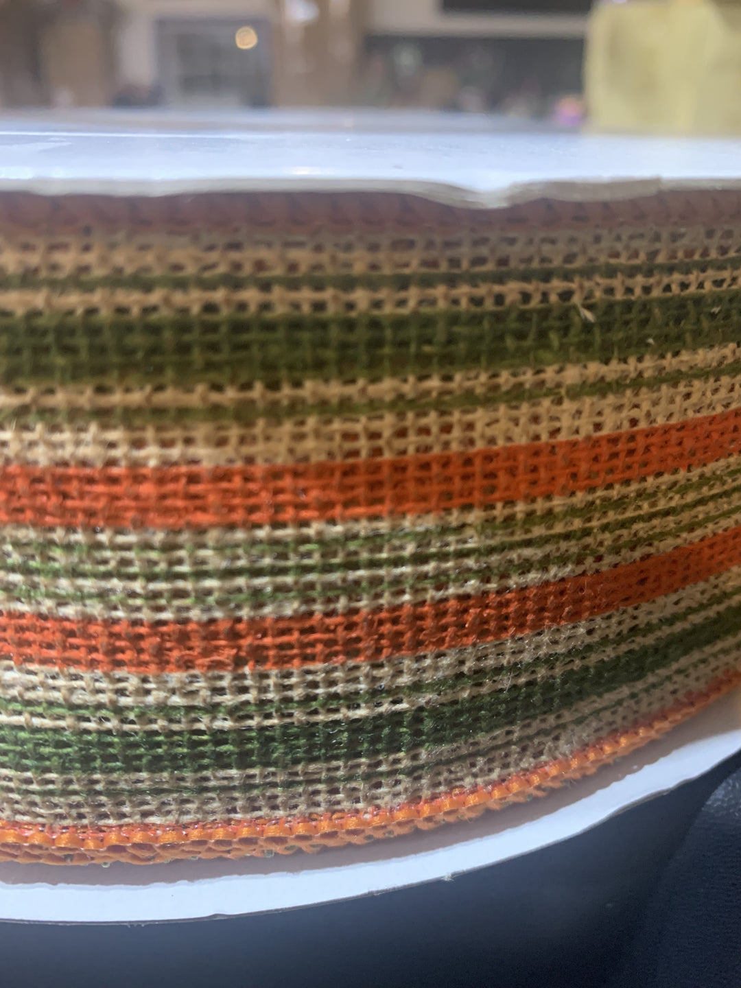 2.5 inch X 50 yard Vert Stripe Faux Burlap OR/GR/TAN