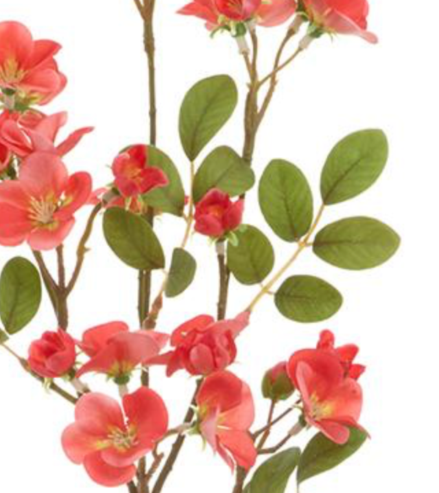 28in Coral Quince Blossom Spray