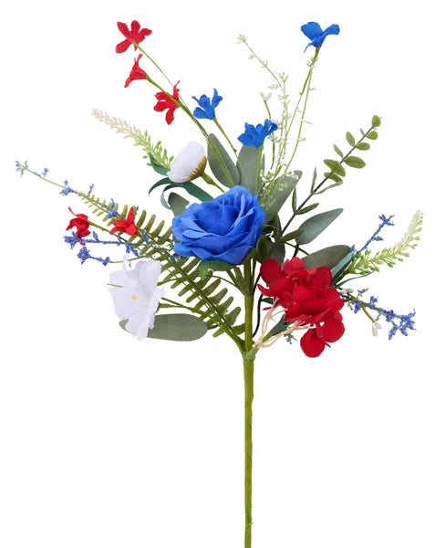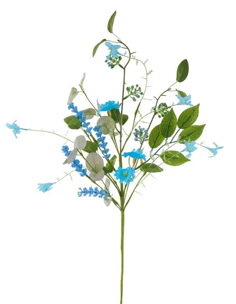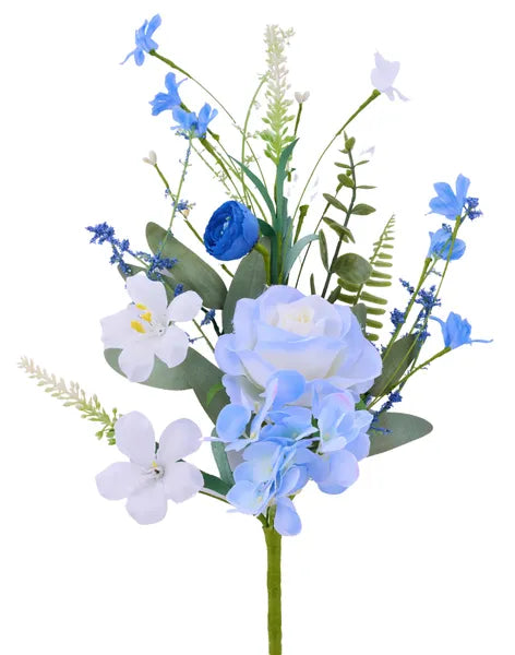 24in Blue/White Fabric Flower/Leaf/Bead Spray