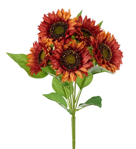 12in Orange/Yellow Fabric Flower/Leaf/Beads