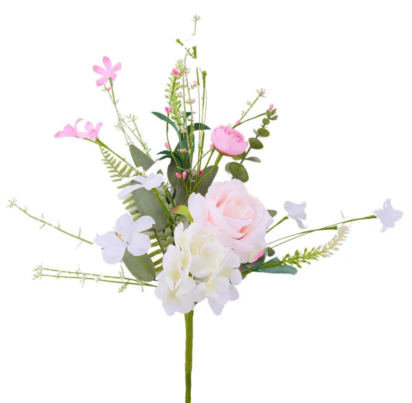 12in Pink/Cream Fabric Flower/Leaf/Beads