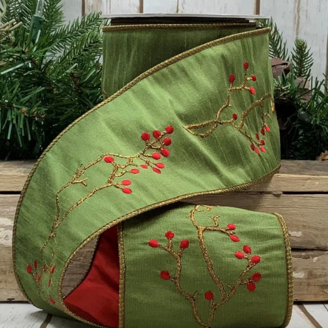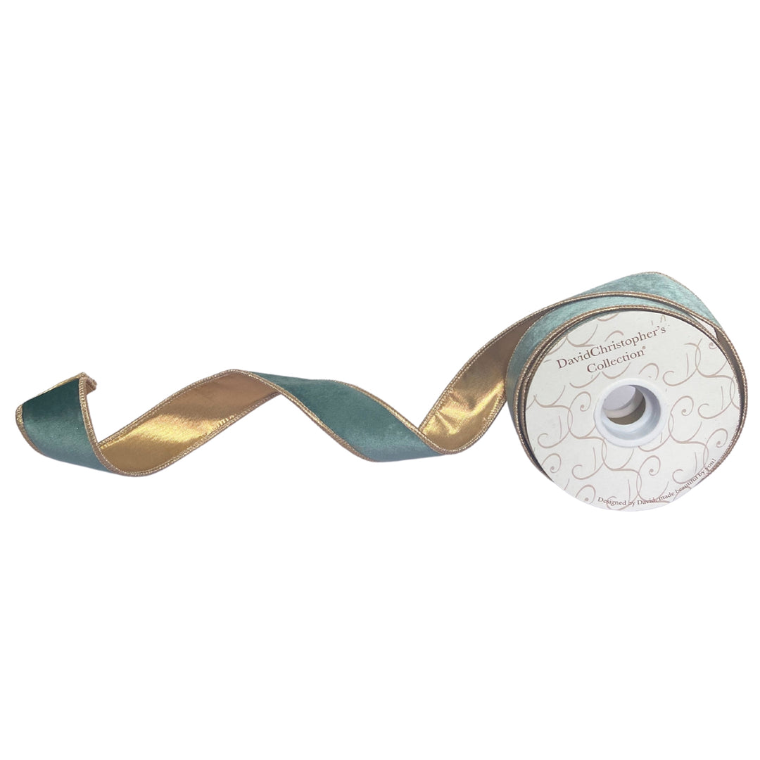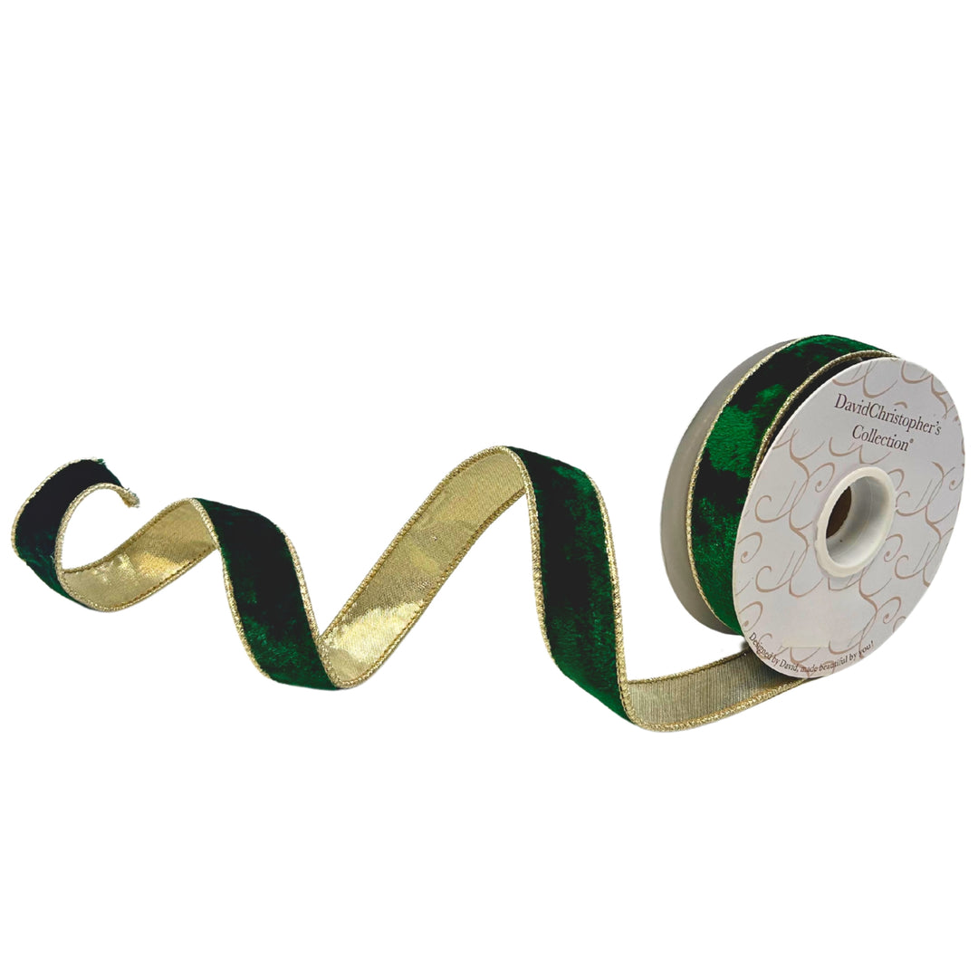 D Stevens 1 inch x 10 Yards Plush Velvet Ribbon in Emerald Green and Gold
