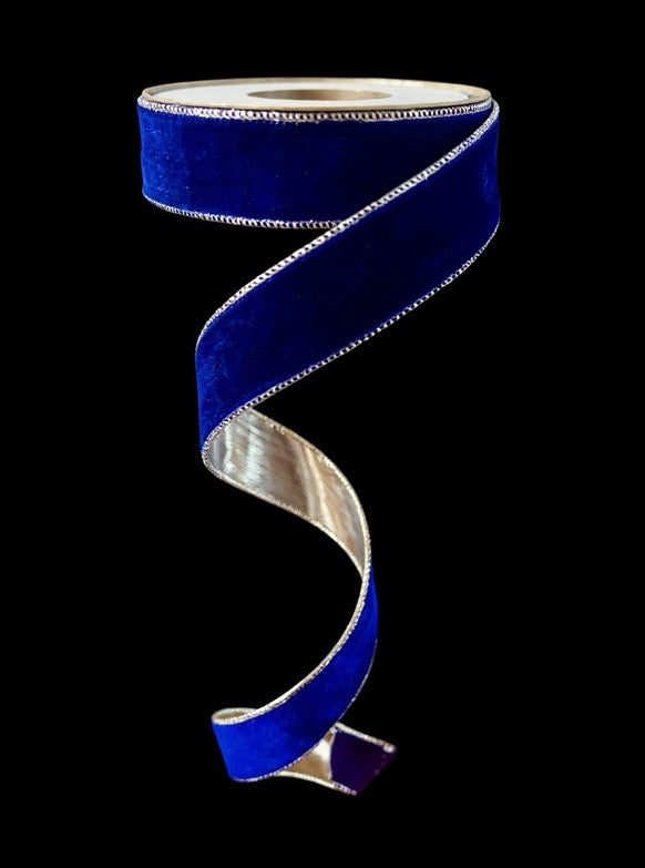 1 Inch x 10 Yard Velvet Blue and Silver Ribbon