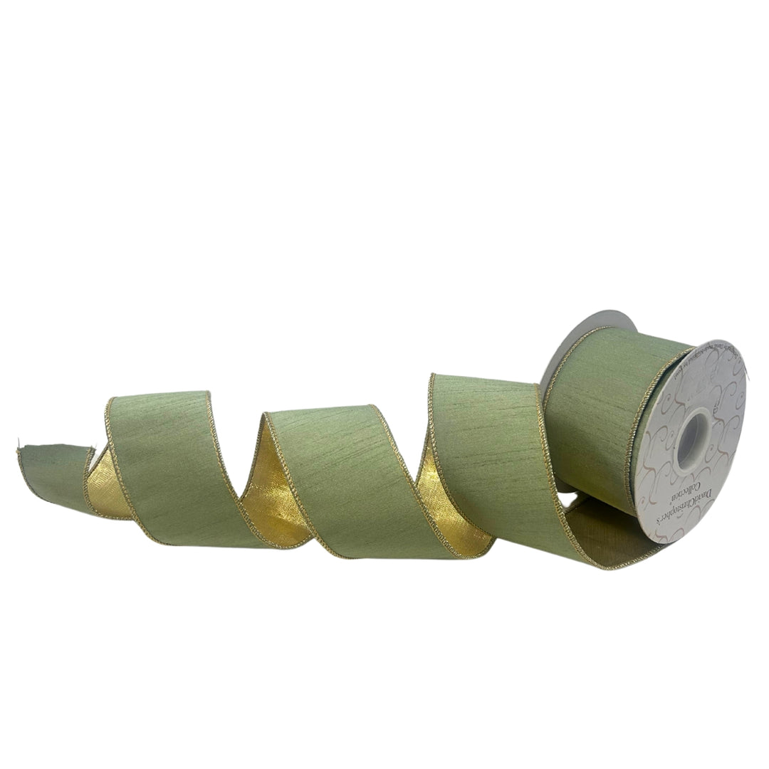 2.5inx10yd SAGE Dupion w/Gold Lame Back