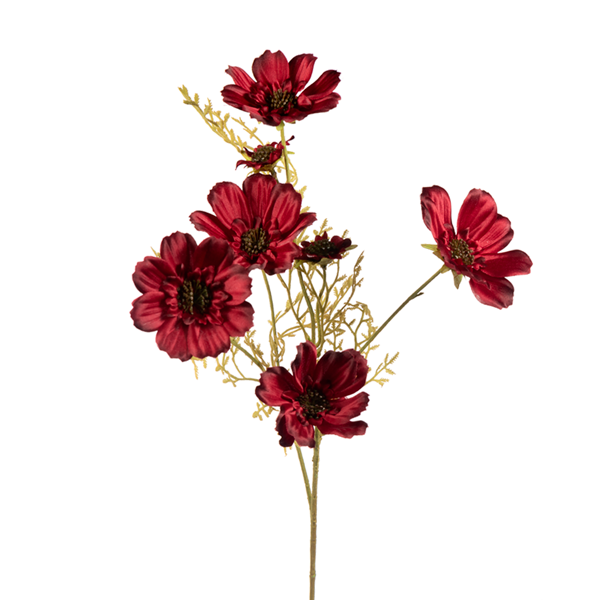 24in Fabric Flower/Leaf/Bead Spray CRANBERRY