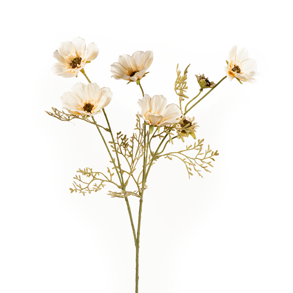 24in Fabric Flower/Leaf/Bead Spray WHITE