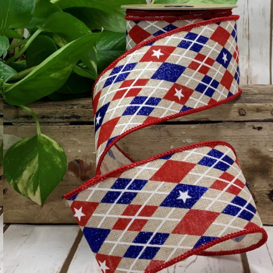 2.5inx10yd Linen Patriotic Glitter Harlequin